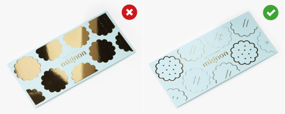 - Die veredelte Fläche sollte niemals mehr als 50 % der gesamten gedruckten Fläche überschreiten