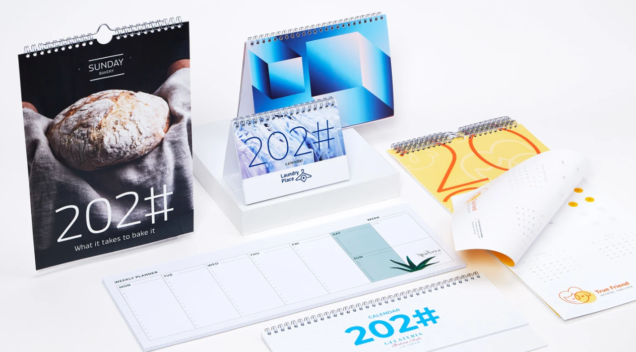Organisieren Sie Ihre Zeit stilvoll mit unseren maßgeschneiderten Kalendern & Planern! In der heutigen technologiegesteuerten Welt bringen Kalender und Terminkalender einen Mehrwert für Ihr Unternehmen, indem sie den Wiedererkennungswert Ihrer Marke erhöhen und einen persönlichen Touch bieten, den digitale Tools nicht erreichen können. Dank unserer großen Auswahl an Grafiken und Formaten können Sie Ihren Kalender oder Ihr Tagebuch ganz nach Ihrem Stil und Ihren Bedürfnissen gestalten. Wählen Sie aus den vielen verfügbaren Layouts Ihr Lieblingslayout aus oder gestalten Sie es ganz individuell, indem Sie Ihre eigenen Fotos hinzufügen und die Schriftarten und Farben verwenden, die Ihnen am besten gefallen: Jede Seite ist eine Gelegenheit, Ihrer Fantasie freien Lauf zu lassen und, einmal gedruckt, Ihre Gedanken zu ordnen, Ihre Ziele zu setzen und wichtige Ereignisse und Termine im Auge zu behalten! Darüber hinaus sind diese personalisierten Produkte das perfekte Geschenk für Urlaube, Konferenzen, Geburtstage oder andere Anlässe, bei denen Sie Ihren Kunden und Angehörigen zeigen möchten, wie sehr Sie sie mögen. Machen Sie mit uns das kommende Jahr zu dem inspirierendsten aller Zeiten! |