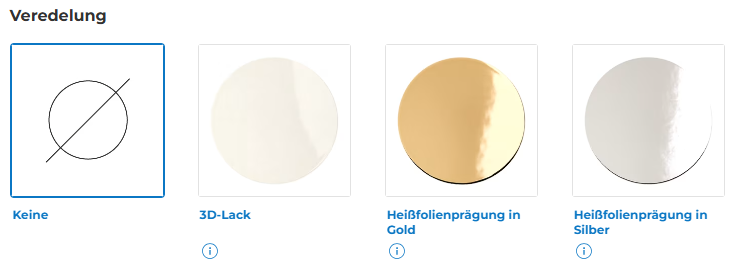ZUSÄTZLICHE OPTIONEN Ja, wir wissen, dass unsere Verpackungen elegant und perfekt sind, so wie sie gestaltet sind! Sie können aber auch entscheiden, ob Sie Ihren Verpackungen aus Pappe etwas mehr hinzufügen möchten (bitte beachten Sie, dass diese Optionen je nach Modell, Format und gewähltem Material verfügbar sind): |