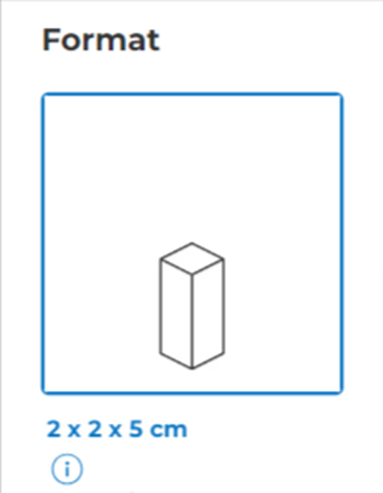 FORMAT Once you’ve found the model (type & shape) that most suits your needs, just customise your box format combining the options given. Generally, our packaging is designed to contain small and medium size objects. The smallest box size is 2 x 2 x 5 cm while the biggest shipper is 50 x 50 x 30 cm. Depending on the model, you may find different formats available to choose from, or you may be asked to select first the width, and then, following the dimension set, the depth. According to the sizes inserted the website automatically shows all the formats available (one or more). Always click on the “i” of information icon to figure out the exact dimension of each side. So, take your time, browse through the many available options and, if you’re not finding the size you’re looking for, try another model that may better satisfy your needs. Consider that bespoke boxes allow to manually insert the dimension you prefer, from 3 to 12 cm per side. |