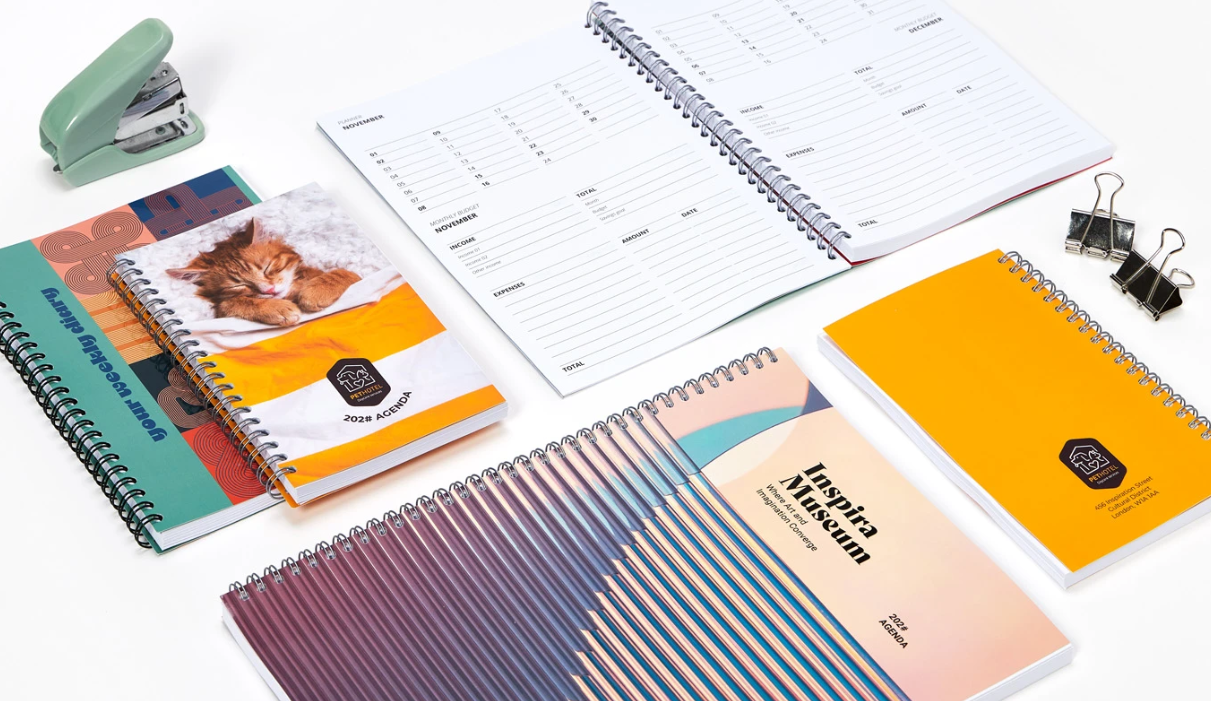 All of these diaries are printed using the CMYK color model. In case you’re looking to print Pantone colours, check out these models and download instructions and template to see if the colour you’re looking for is available.