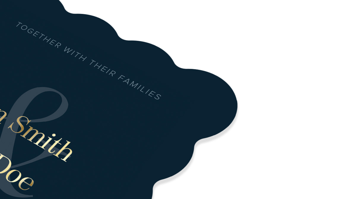 We offer rounded corners for most cards, plus unique Ticket and Scalloped Edge shapes for certain invitation sizes.