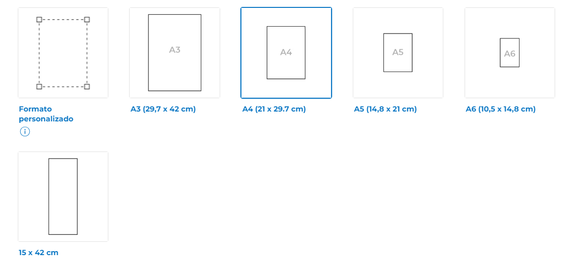No puedes elegir el tamaño de la espiral (diámetro), que se hace automáticamente en función del tamaño del lomo del producto impreso. No obstante, puedes elegir que la espiral sea negra o plateada.