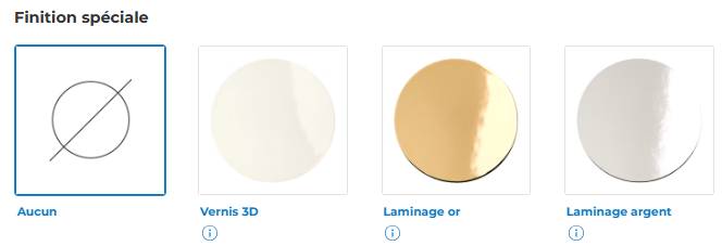 OPTIONS SUPPLEMENTAIRES Oui, nous savons que nos boîtes sont toutes élégantes et parfaites telles qu'elles sont conçues ! cependant, vous pouvez ajouter ces valeurs supplémentaires à votre packaging en carton (veuillez noter que les options suivantes sont disponibles selon le modèle, le format et le matériau sélectionnés) : |
