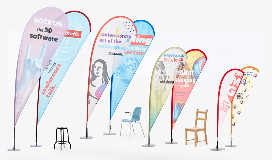 Les oriflammes sont des affichages légers, il est donc généralement facile de les déplacer. Si vous choisissez un modèle de grande taille, il nécessitera un soutien pour être déplacé ; de même si vous avez opté pour une base lestée remplie.