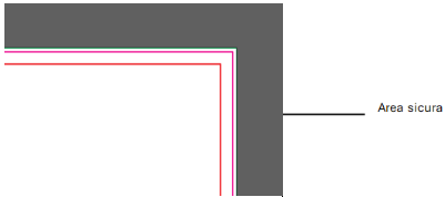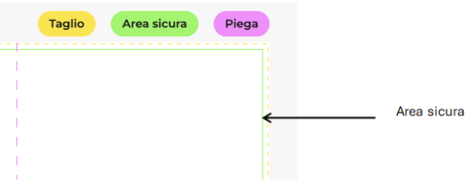 Se hai scaricato il nostro Template, troverai al suo interno alcune linee di colore diverso che ti aiuteranno ad impaginare correttamente la tua grafica. Tra queste linee ce n’è una di colore rosso, chiamata Area sicura.