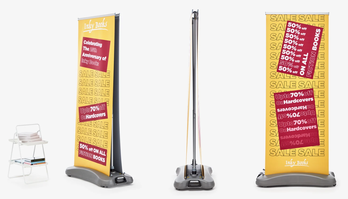 Se devi usare il roll up in uno spazio completamente aperto ti consigliamo di scegliere il modello outdoor bifacciale. La sua base zavorrabile, da riempire con acqua o sabbia, ti assicura un prodotto durevole e stabile anche in condizioni di forte vento o pioggia. Se tieni l’espositore in un luogo riparato, non direttamente esposto a vento e pioggia, puoi temporaneamente lasciare all’aperto anche gli altri modelli di roll up, assicurandoti che siano ben protetti e ritirandoli all’interno dopo la chiusura.
