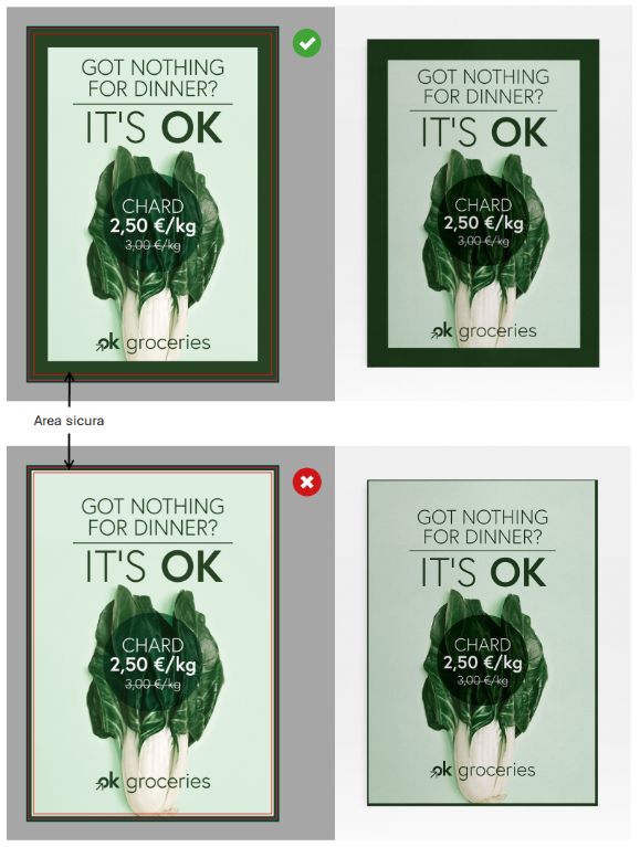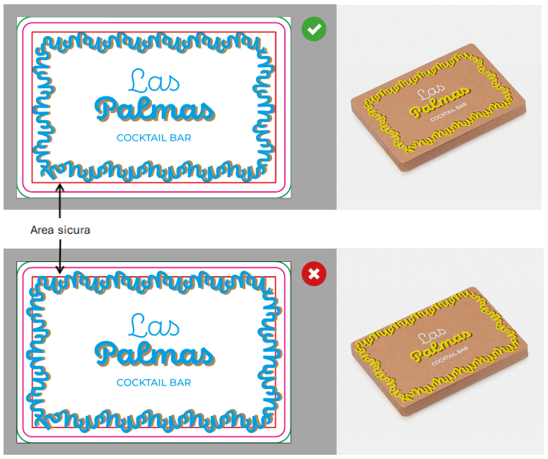 Se nel tuo file è presente una cornice, inseriscila all’interno dell’Area sicura (ad almeno 3 mm dalla linea di taglio) e avrai la certezza di ottenere un buon risultato!