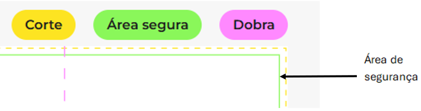 Durante a fase de corte do produto impresso, é normal que possam ocorrer desvios de 1 a 2 mm. Por isso, é importante posicionar textos e elementos gráficos dentro da Área de segurança, para garantir que não sejam cortados ou fiquem demasiado próximos da margem, evitando, assim, resultados esteticamente indesejáveis.