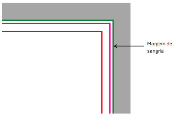 Durante a fase de corte do produto impresso, é normal que existam pequenas variações no próprio corte, estas são chamadas de “tolerâncias”. A margem de sangria fica para além da linha de corte do produto final e serve para evitar que, após o corte, fiquem bordas brancas ao longo do perímetro, o que resultaria num acabamento estético indesejado.