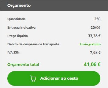 Gostaríamos de te informar, em qualquer caso, que, mesmo que você tenha inseridos vários trabalhos no mesmo pedido com a mesma data de entrega, não podemos garantir que as mercadorias serão entregues em uma única remessa. Nossa prioridade é respeitar a data de entrega programada selecionada e, para isso, pode ser necessário fazer remessas e entregas separadas, mesmo para um único pedido ou para vários pedidos programados para o mesmo dia.